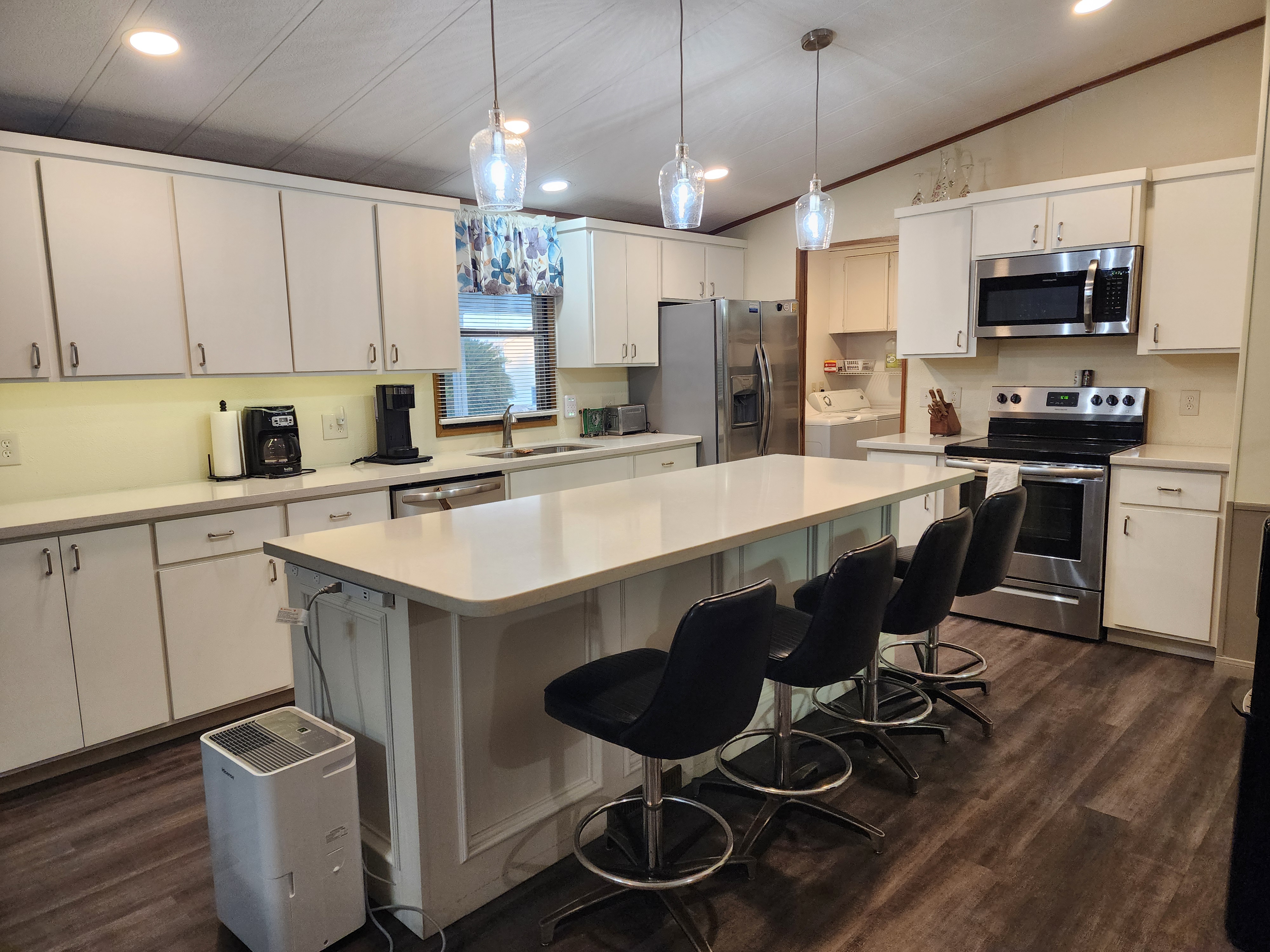 Fabulous outdoor space for added living space. Home features both a large screened in porch and deck. The front has a car port with additional parking space for your golf cart. Both furnace & central air new in 2025. Home is located very close to all the park's activities: salt water pool, indoor pickleball, shuffleboard, dog park, wood shop, billiards and more.